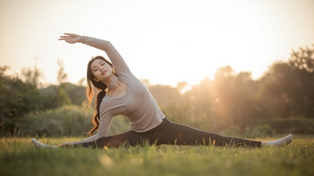 - Rotina matinal: alongamentos curtos ao acordar melhoram postura e disposição.