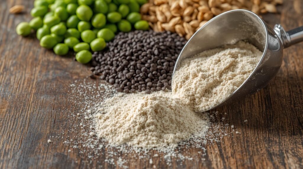 - Proteína de ervilha: rica em leucina, essencial para o crescimento muscular.