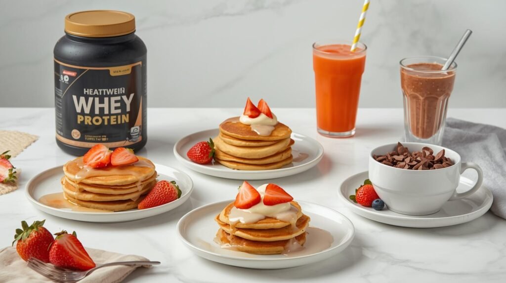 • Timing pré-treino: consuma algo leve 30–60 min antes do treino (banana + whey ou panqueca pequena).